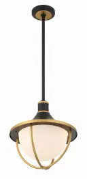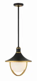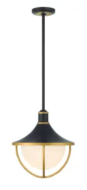 The Atlas Outdoor Pendant combines modern aesthetics with classic charm through its distinctive matte black and gold two-tone finish. The white glass bowl shade with gold-arched rods creates visual interest while providing excellent illumination for covered outdoor spaces.