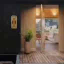 The Panels LED Wall Sconce makes a bold architectural statement with its floating two-tone frame and backlit center panel. Wet-rated for outdoor use with 3-CCT adjustable color temperature and dimming capabilities.