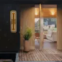 The Panels LED Wall Sconce makes a bold architectural statement with its floating two-tone frame and backlit center panel. Featuring 3-CCT adjustable color temperature and dimming capabilities, this wet-rated fixture combines modern design with practical versatility for outdoor spaces.