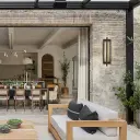 Homeowners seeking upscale outdoor lighting with natural materials and smart features for entryways and patios