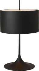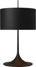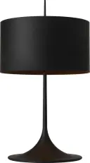 The Spinet table lamp features a distinctive trumpet-shaped base in matte black finish, creating a bold modern statement. At 26" tall, it provides ideal task and ambient lighting for living spaces and bedrooms.