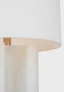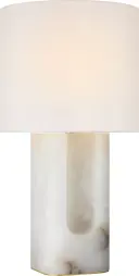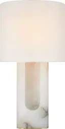 The Palo 28" table lamp showcases the natural elegance of alabaster stone paired with a refined linen shade. Its substantial height and organic modern aesthetic make it a statement piece for upscale residential and hospitality settings.