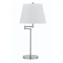 The Andros table lamp combines durable metal construction with a clean brushed steel finish and white hardback shade. Its 3-way switching provides flexible lighting control, making it ideal for reading or ambient lighting.