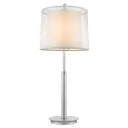 The Nimbus table lamp combines metallic silver and polished chrome finishes with a sheer snow shantung double shade for refined illumination. At 30.5" tall, it makes a statement while providing versatile 3-way lighting control.