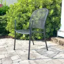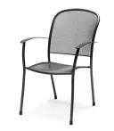 The Caredo stackable arm chair combines traditional elegance with modern durability. Featuring proprietary Electrotherm coating that resists scratching and fading while staying cooler to touch, this steel mesh chair offers ergonomic comfort and space-saving storage.