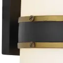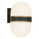 The Capsule Outdoor Sconce by Brian Patrick Flynn combines futuristic aesthetics with industrial edge. Its two-tone finish and distinctive capsule-shaped white glass create dramatic light effects perfect for modern exteriors.