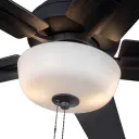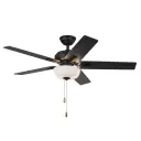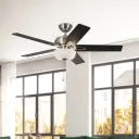 The Erikson 52-inch ceiling fan combines clean modern design with practical versatility. Features integrated LED lighting with warm 3000K color temperature, reversible blade finishes for customization, and sloped ceiling adaptability.