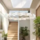 The Nami chandelier brings fluid, organic design to contemporary spaces with its distinctive dual-ring aluminum construction. Integrated LED provides warm, elegant illumination while the sculptural form serves as a statement piece.