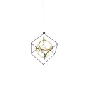 Interconnecting aluminum rings within steel frame cube. Finely textured metallic and satin powder-coat finishes. Opal silicon circular diffusers. Up a...
