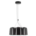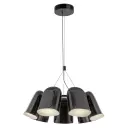 The Bell chandelier combines clean contemporary design with functional elegance. Featuring distinctive bell-shaped shades arranged around a central ring, this 20-inch fixture provides warm, adjustable LED illumination perfect for modern interiors.