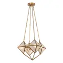 The Cairo chandelier transforms ancient architectural inspiration into contemporary luxury. Designed by Elisa Carlucci and inspired by IM Pei's Louvre pyramids, this 21-inch fixture pairs vintage brass metalwork with stunning ribbed glass for sophisticated visual impact.