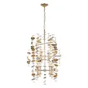 The Yukari chandelier transforms spaces with its eucalyptus-inspired design, featuring delicate leaf-like petals in polished brass that create a stunning focal point. Perfect for those seeking organic beauty with transitional sophistication.