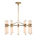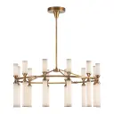 The Edwin chandelier masterfully blends 1920s Art Deco glamour with contemporary LED efficiency. Its 38-inch span and ribbed frosted glass create dramatic visual impact while the integrated 3000K warm LED provides inviting illumination.