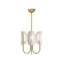 The Seno Chandelier brings artistic sophistication with its origami-inspired white cotton shades and aged gold finish. At 15 inches, it's perfectly scaled for intimate spaces, offering soft, diffused light through delicate fabric folds.