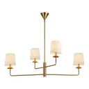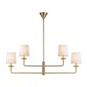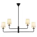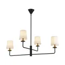 The Bridgette chandelier combines striking triangular geometry with warm fabric shading for a contemporary look that works across multiple design styles. At 45 inches, it makes a substantial statement while the white linen shade softens the bold matte black frame.
