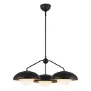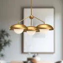 The Rubio chandelier blends mid-century design with contemporary flair through oversized half-shades and stunning opal glass globes. Its artistic yet minimal aesthetic makes it a versatile statement piece for multiple spaces.