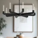 The Claire 32-inch chandelier masterfully blends minimalist Bauhaus design with Art Deco sophistication. Forged metal arms in aged gold finish create a timeless statement piece that adapts to multiple design styles while maintaining refined elegance.