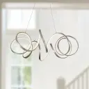The Synergy chandelier features a striking continuous helical loop design with integrated LED lighting. Its rolled rectangular aluminum extrusion with silicon opal lens creates soft, even illumination while showcasing the curated Antique Silver finish from every angle.