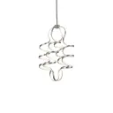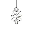 The Synergy chandelier features a distinctive looping design with integrated LED technology and soft opal diffusion. Its rolled rectangular aluminum extrusion creates a continuous helical path of light, perfect for modern interiors.