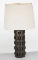 The Mullin table lamp combines organic warmth with refined design through its dusted cocoa wood finish and classic linen shade. At 31 inches tall, it provides substantial presence while maintaining versatility across traditional and contemporary interiors.