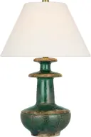 The Temara table lamp brings refined coastal elegance with its distinctive Corsican Green ceramic base and classic linen shade. At 28" tall, it provides substantial presence while maintaining versatility across traditional and transitional interiors.