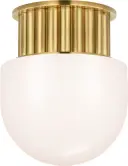 The Nolan 8" flush mount combines classic antique brass with a clean white glass dome for versatile lighting. Its compact profile makes it ideal for smaller spaces while delivering sophisticated style.