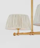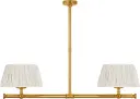 The Marion 56" Linear Chandelier combines classic elegance with modern proportions. Its antique-burnished brass finish and champagne silk pleated shades create warm, sophisticated lighting perfect for dining rooms and kitchen islands.