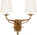 Elegant Double Sconce with Warm Gold Finish and Soft Linen Shades