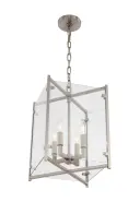 The Danbury pendant combines minimalist design with classic lantern styling. Clear glass panels and brushed nickel finish create versatile elegance suitable for modern and transitional spaces alike.