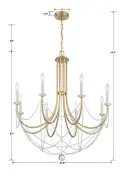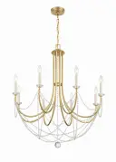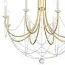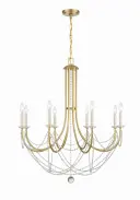 The Delilah chandelier delivers formal sophistication with its 31.5-inch frame adorned with cascading crystal beads. The aged brass finish and swooping metal arms create a rich, traditional aesthetic perfect for statement-making spaces.