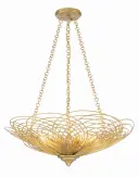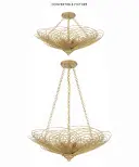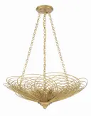 The Doral chandelier transforms swirling metal rings into a blooming flower sculpture. Its Renaissance Gold finish and symmetrical organic shape create an artistic focal point that works beautifully in coastal and modern interiors.