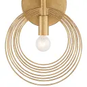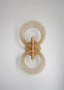 The Doral sconce transforms delicate flower petals into swirling metal rings, creating an artistic focal point. Its symmetrical organic shape and warm Renaissance Gold finish bring versatile elegance to modern coastal and transitional spaces.