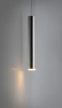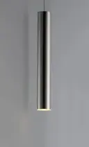 The Flute Mini Pendant features an elongated metal tube design in polished chrome that creates a modern sculptural statement. With integrated LED technology and a compact footprint, it's ideal for task lighting.