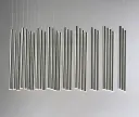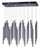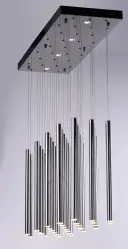 The Flute Multi-Light Pendant transforms spaces with 35 elongated metal tubes in stunning Black Chrome finish. Each tube houses a replaceable LED module, while ceiling pan spots highlight the high-gloss finish and provide additional downlight. A bold architectural piece perfect for grand spaces.