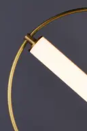 The Flare Single Pendant combines striking black and soft gold finishes with a tube of evenly diffused LED light. Its adjustable ring design allows for horizontal or angled positioning, making it a versatile choice for modern spaces.