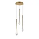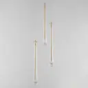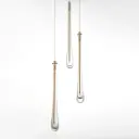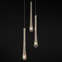 The Stillo collection elevates the classic teardrop pendant with hand-blown bubble glass and plated gold metalwork. Dense, elongated glass forms create visual drama while energy-efficient LED G4 lamps provide warm illumination.