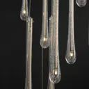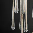 The Stillo collection elevates the classic teardrop pendant with hand-blown bubble glass and plated gold metalwork. Eighteen elongated glass shades create dramatic visual impact while energy-efficient LED G4 lamps provide warm illumination.