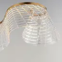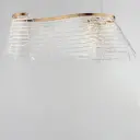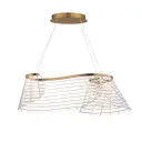 The Tartan Linear Pendant brings artistic sophistication with its hand-formed acrylic body featuring deep-etched grid patterns inspired by Scottish Highland fabrics. The curling structure creates visual movement while the brushed champagne finish adds warmth.