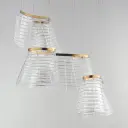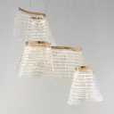 The Tartan pendant brings artistic sophistication with its hand-formed acrylic shades featuring etched grid patterns inspired by Scottish Highland fabrics. Adjustable color temperature and high CRI make it versatile for various settings.