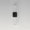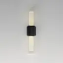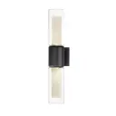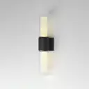 The Dram outdoor wall sconce combines contemporary design with practical functionality. Dual cylinder glass shades diffuse LED light through rounded black powder-coated caps, creating ambient outdoor lighting that's both stylish and energy-efficient.