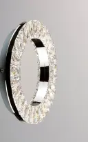 The Charm LED Wall Sconce features cascading beveled crystal rings suspended on cables, creating a floating effect. With 820 lumens of warm 3000K light and a polished chrome finish, it delivers brilliant illumination and serves as a striking focal point.