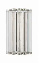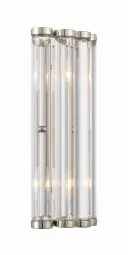 The Elliot sconce by Libby Langdon combines chunky Lucite rods with polished nickel framework for a sleek, masculine aesthetic. Light filters beautifully through the rods creating a soft glow, while the scalloped metalwork adds architectural interest from every angle.
