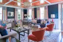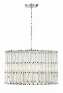 The Elliot chandelier by Libby Langdon combines chunky Lucite rods with polished nickel framework for a sleek, masculine aesthetic. Light filters beautifully through the acrylic elements, creating ambient glow.