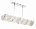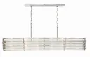 The Elliot collection by Libby Langdon combines chunky Lucite rods with polished nickel framework for a sophisticated, masculine aesthetic. Light filters beautifully through the acrylic elements, creating ambient glow while the scalloped metalwork adds architectural interest from every angle.