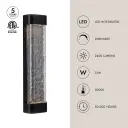 The Moondew combines hand-crafted art glass with formed aluminum in a sleek 24-inch design. Integrated LED technology with warm 3000K lighting creates an internal glow that showcases the glass texture, while additional top and bottom lights provide functional illumination.