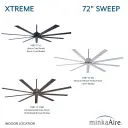 The Xtreme 72" ceiling fan delivers powerful airflow for large spaces with its 9-blade design and energy-efficient DC motor. The brushed nickel finish and aluminum construction provide durability and contemporary style.