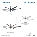 The Xtreme 96" ceiling fan delivers exceptional air movement for large residential and commercial spaces. With 9 aluminum blades and energy-efficient DC motor, it combines industrial-strength performance with contemporary styling.