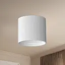 LED flush mount made from heavy gauge cast aluminum painted white or black, round cylinder shaped. Shines through a high-precision optical lens down i...