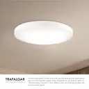 The Trafalgar flush mount delivers minimalist contemporary style with its descending dome glass shade and integrated LED technology. Perfect for low-ceiling spaces requiring efficient, dimmable lighting.