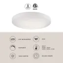 Minimalist designed LED flush mount with round descending dome shaped white glass and white powder coated canopy. Equipped with our powerful 120V, AC ...